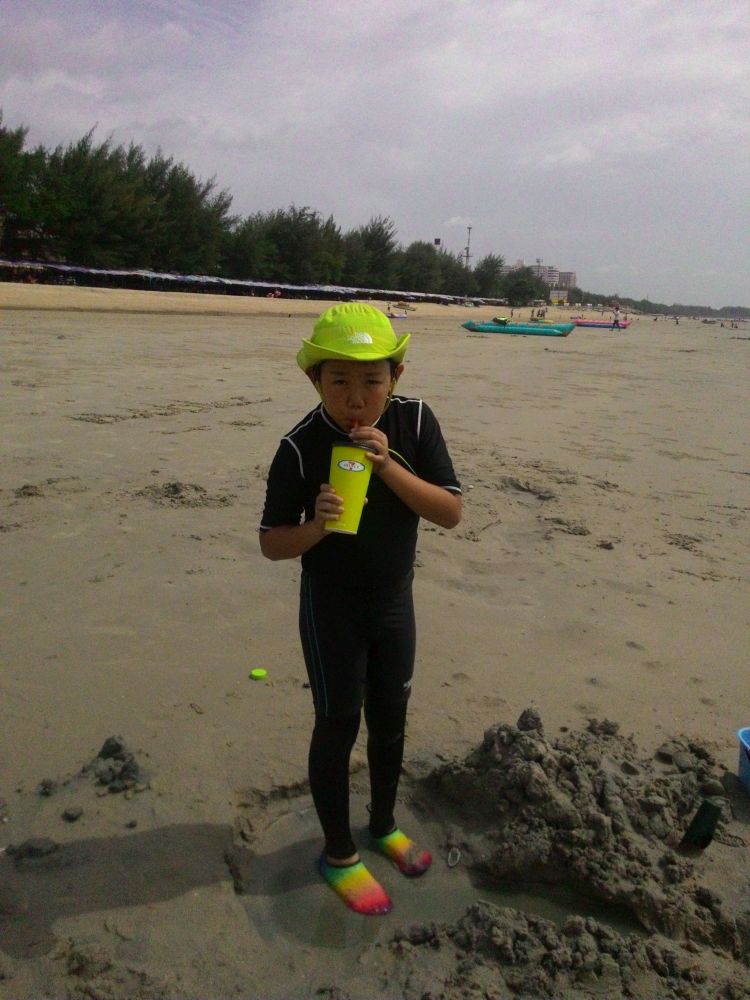 昼が近くなり一度パパさんと子供たちと泳いだ。