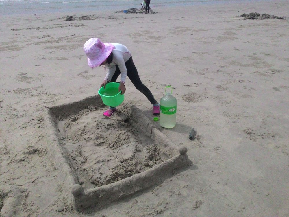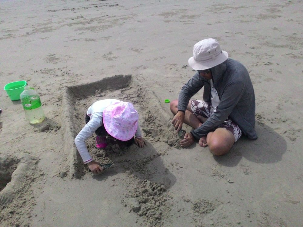 シャコのトンネルを掘り出すたろさん