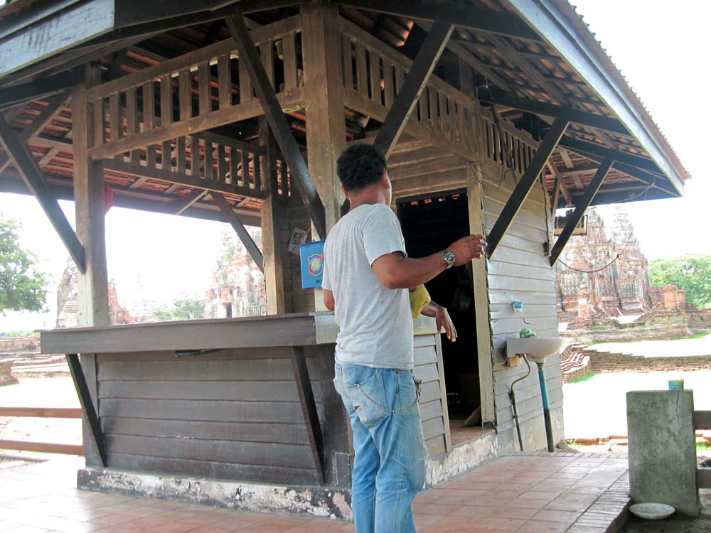 受付で引き替えてきたチケットをうけとる象遣いさん