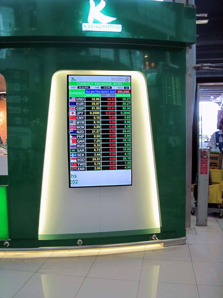 スワンナプーム空港の銀行ブースは率の悪い公定レートだけど