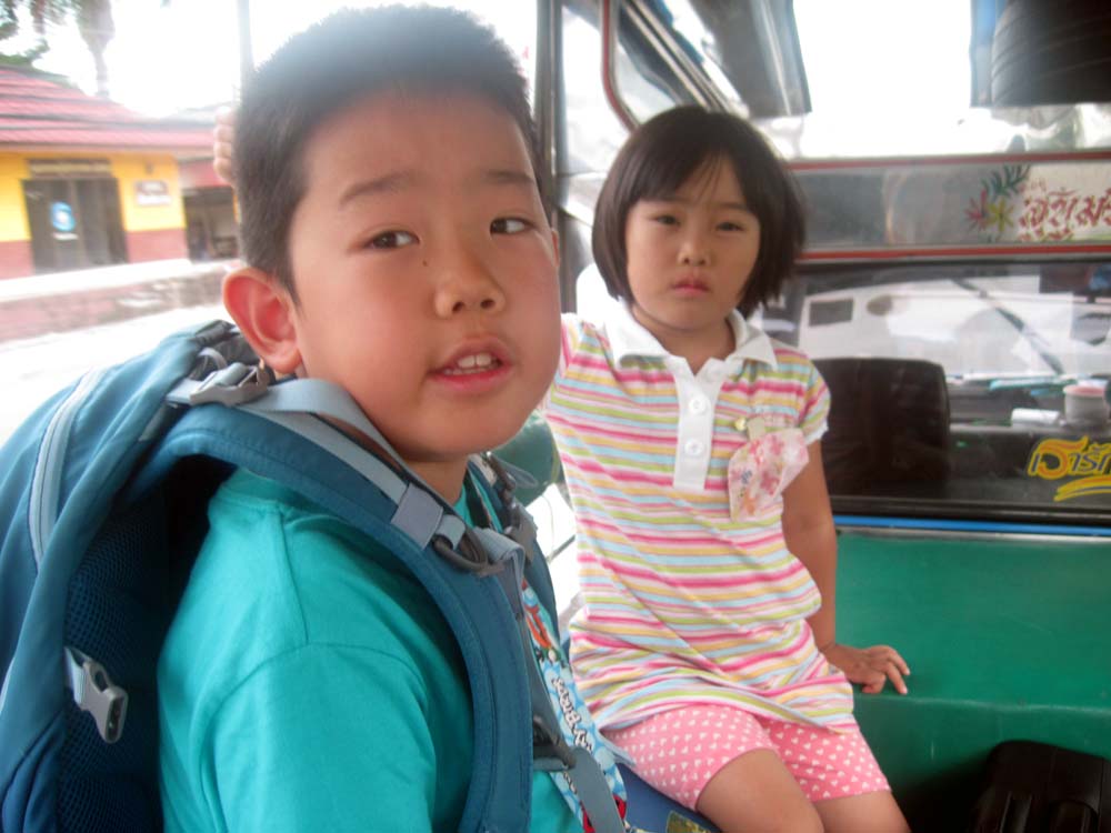 荷物回収して子どもを乗せて税関通過。タイに入国した!