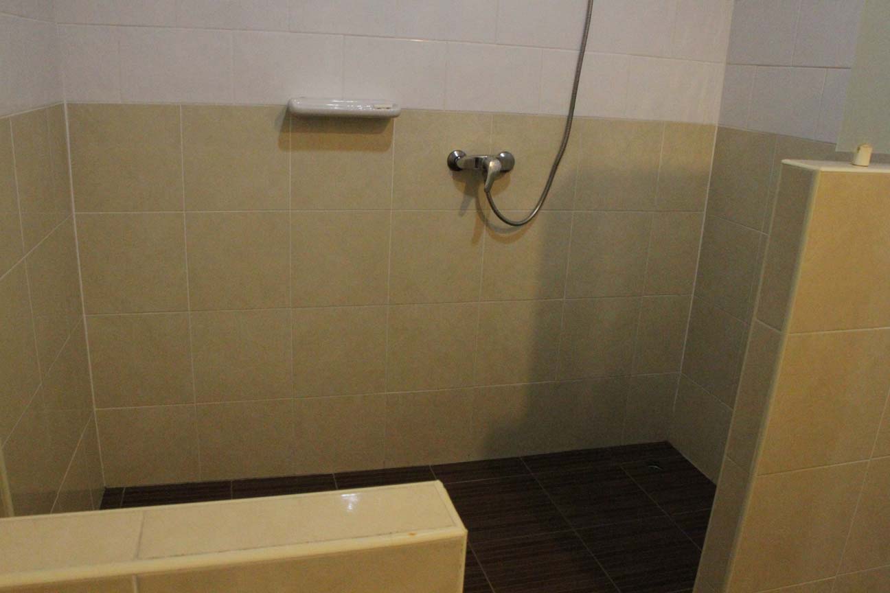 お風呂場だけは広々としてトイレとシャワーのあいだについたてがあり