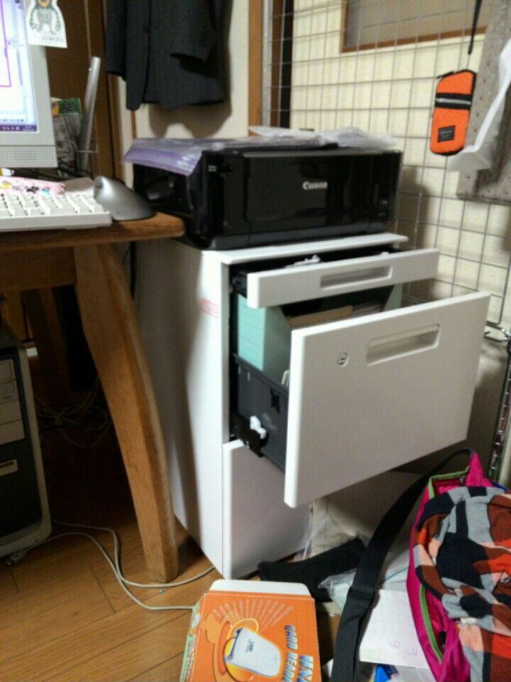 これまで足もとで段ボールに入れてたお仕事関係の書類も