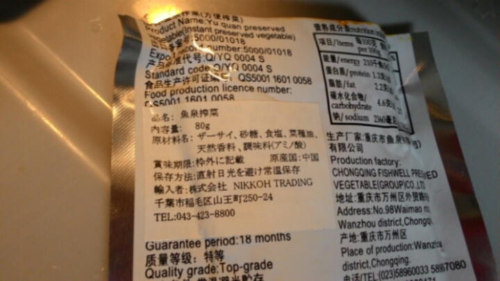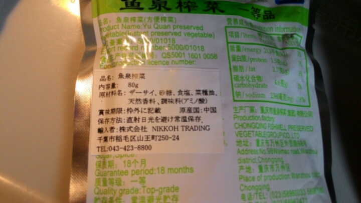 四川搾菜のほうは、原材料に搾菜と塩と唐辛子しか書いてなかった。