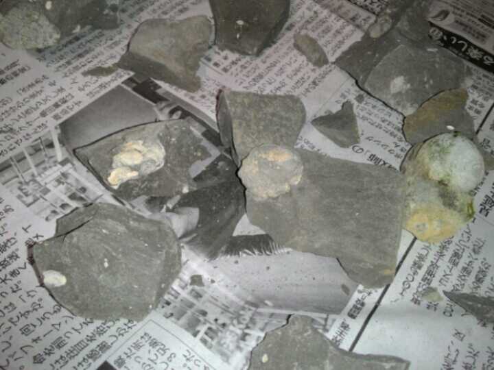 ためしに割ってみるとなんか小さい貝みたいのが出てきた。