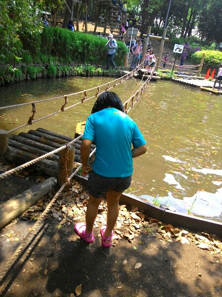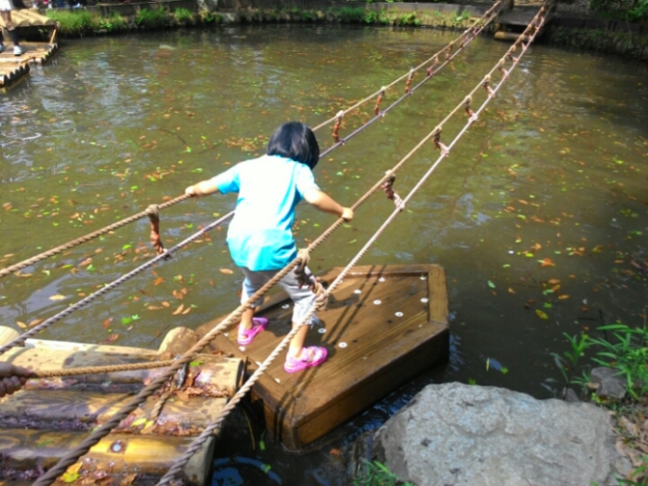 池のむこうへわたる遊具で遊んだ。