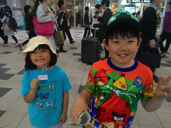 そのあと電車のなかで子どもたちはパパさんのスマホ借りることになり