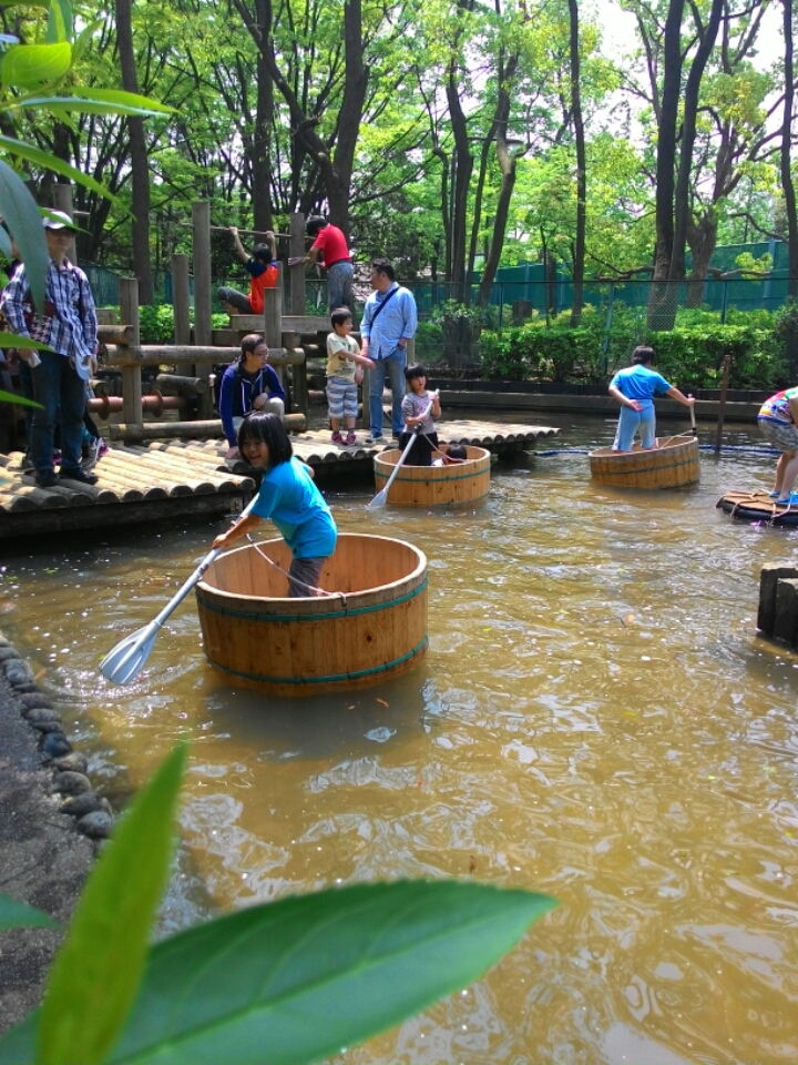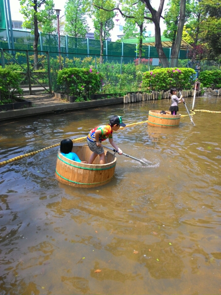 たろさんはまずたらいの舟で池の真ん中を一周する遊具。