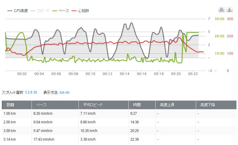 時速7キロだけど、それ以降は9.8キロ、3キロ目は10キロ台。