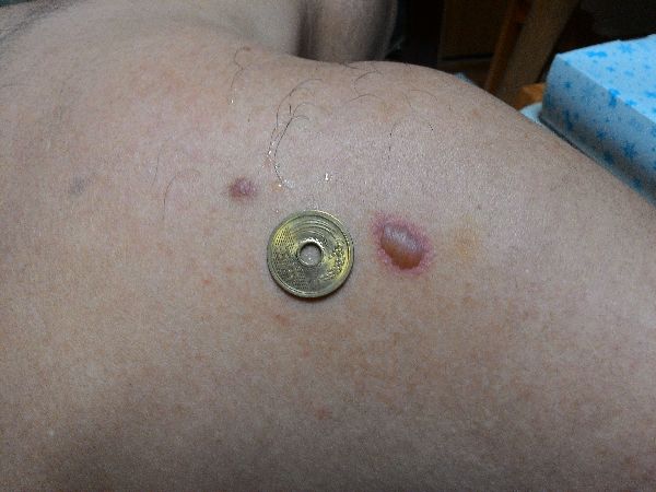 ちょっとグロいんですけど、肩にこんな水ぶくれが。