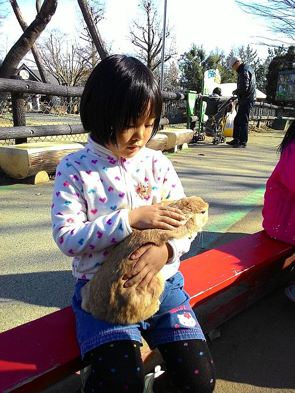 ふれあいコーナーに行き、うさぎやひよこを抱いて暖をとった。