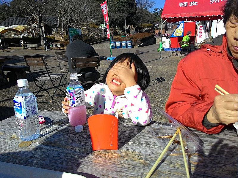 上むいてジュースのむとお日さまがまぶしいんだと・・・。