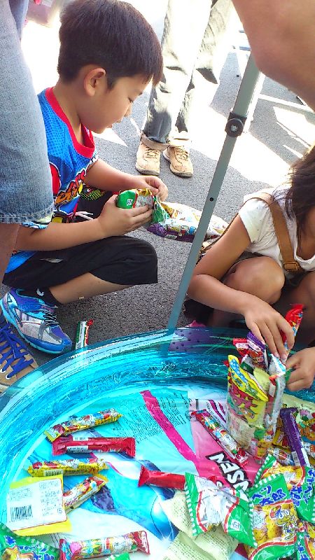 たろさんとけろりこにそれぞれスナックと飴の詰め放題やらせた。