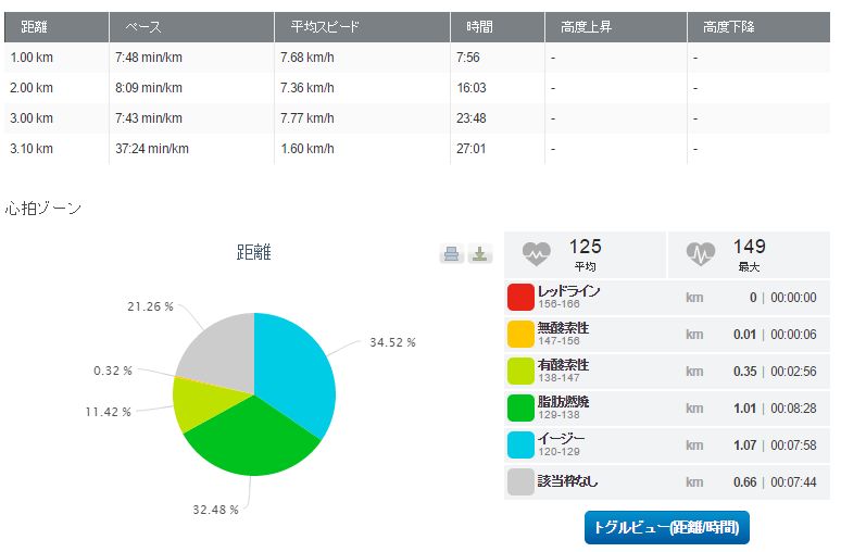 無酸素性もほぼなしで、有酸素~イージー(もしくはそれ以下)に