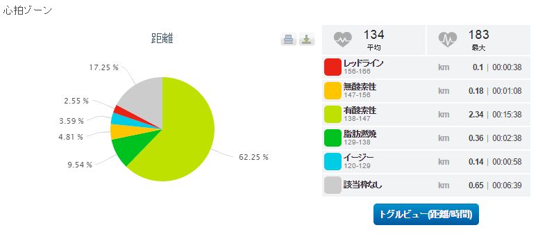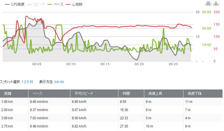 走り慣れて心拍がやや下がりキツさが感じられなくなったことで