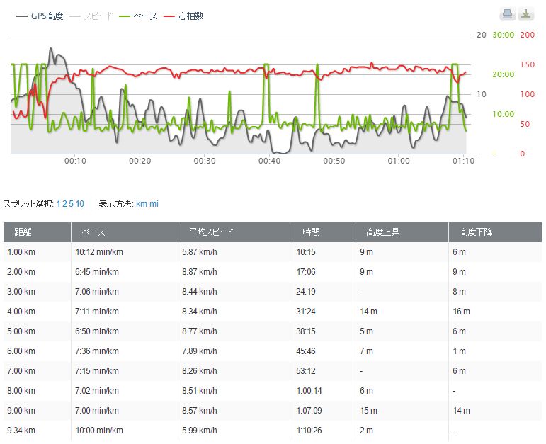 だいたい時速8キロで、そとで10キロ走れるのはわかった。