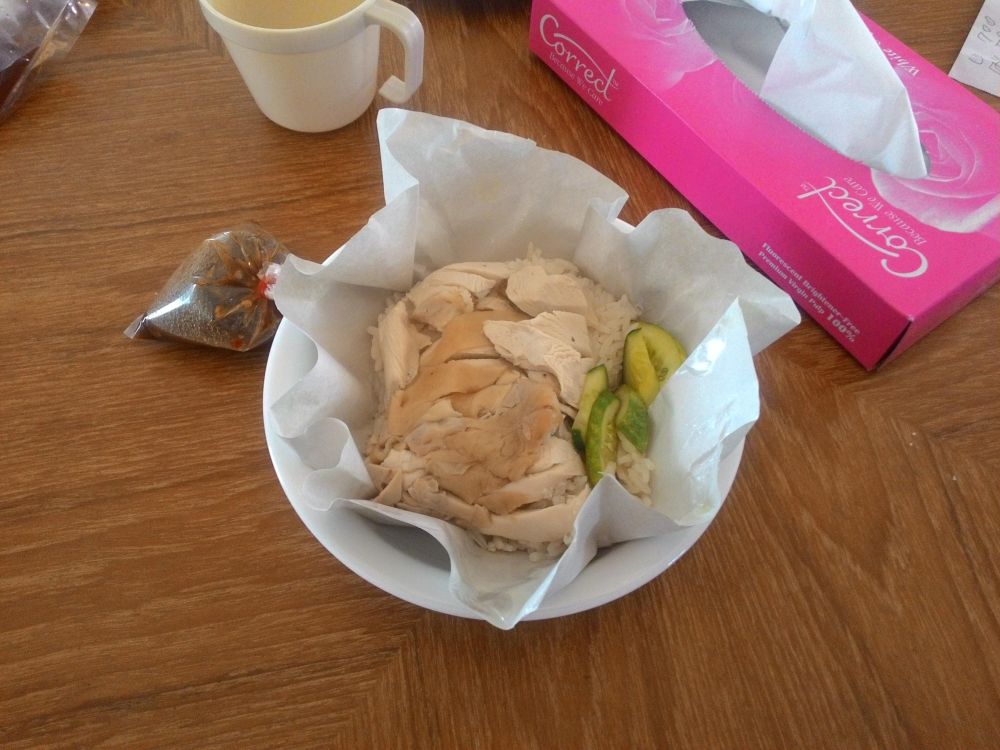 私たちはプールのあとに、冷蔵庫にあった残り物を食べた。