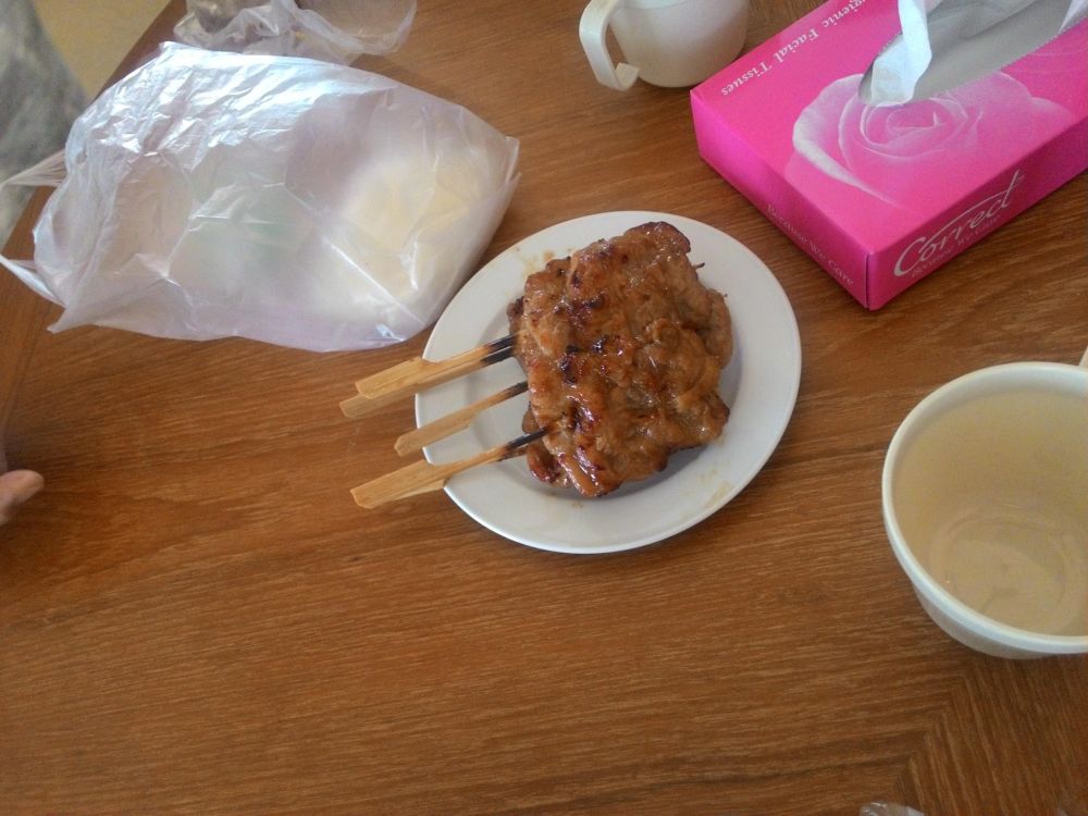 いつも買う豚肉串焼きと、袋に入ってるのはカオニャオ