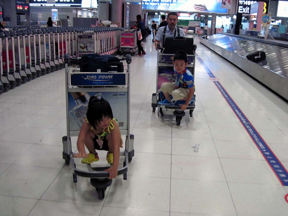 荷物回収して子どもを乗せて税関通過。タイに入国した!