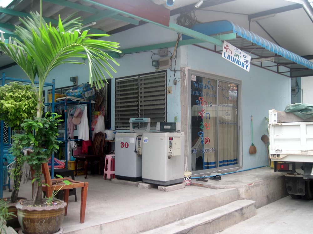 目の前の名もなきソイの奥に、30バーツでまわせる洗濯機があった。