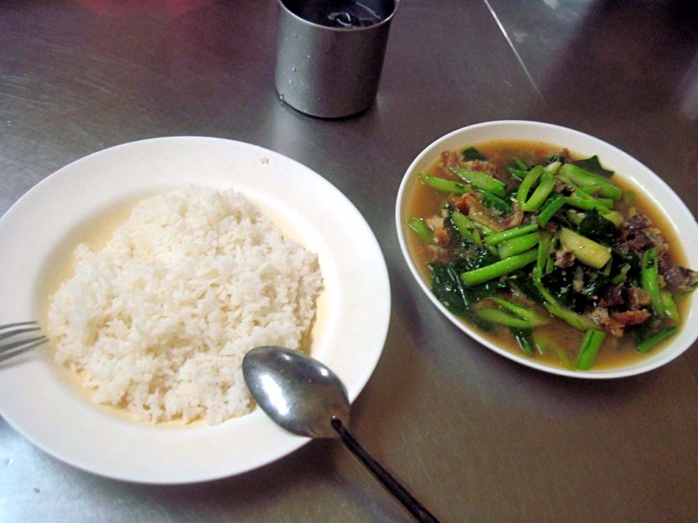 タイスキスープに揚げ豚とカイラン菜の炒め物とごはん2つとか頼んだら