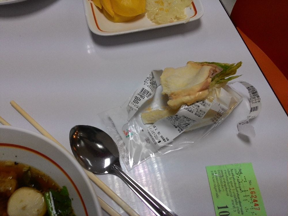 日本のセブンで買ったサンドイッチを袋から出してみたけど