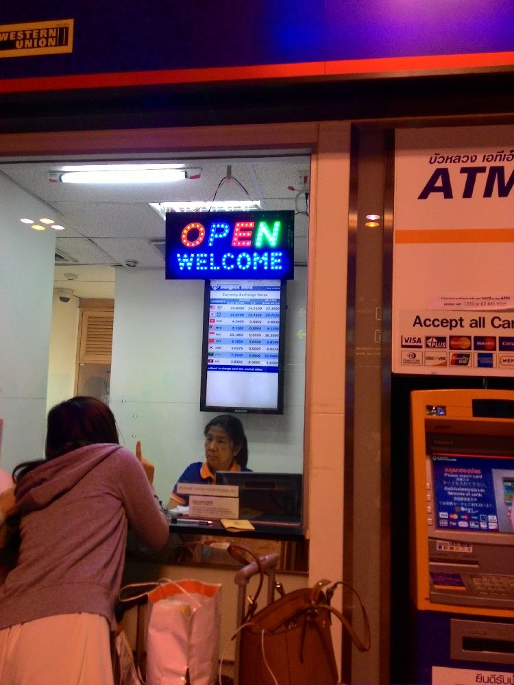 入国審査の前の銀行カウンターで1万円だけ両替した。1万円が3197バーツ。