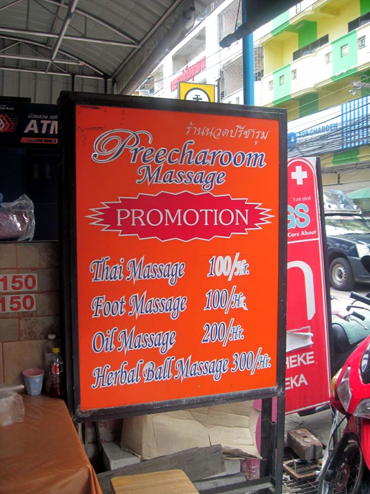 ブアカーオ界隈は1時間100バーツのタイマッサージが結構ある。
