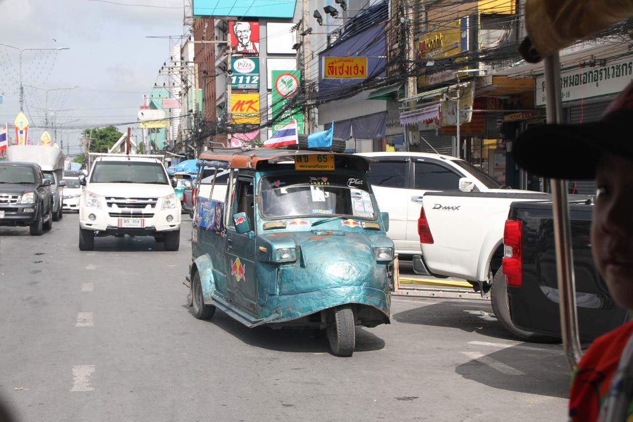 「マハタートまで。50バーツでどう?」とトゥクトゥクに声をかけると