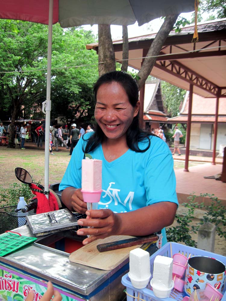 溶けやすい気候なので、受け皿をつけて串を刺してくれるところがありがたかった。