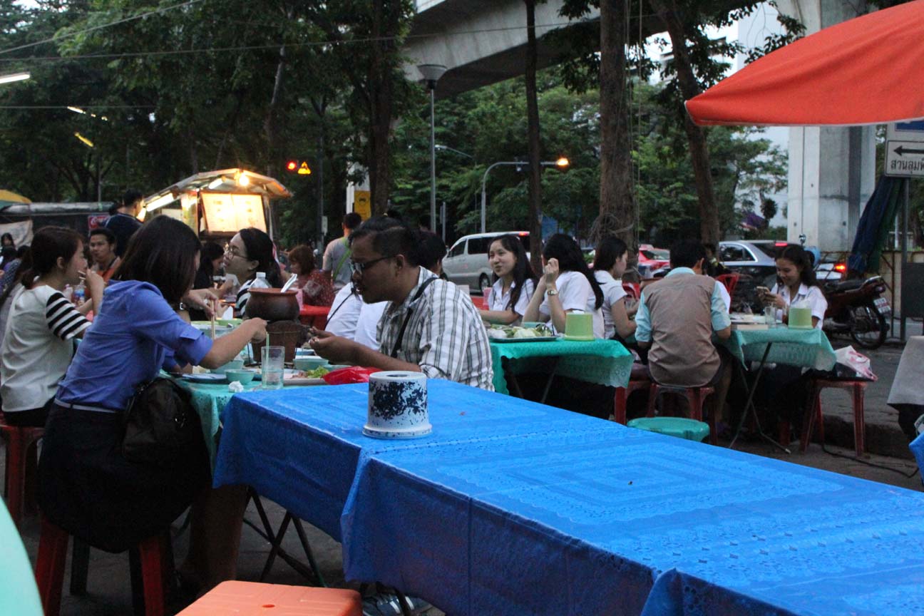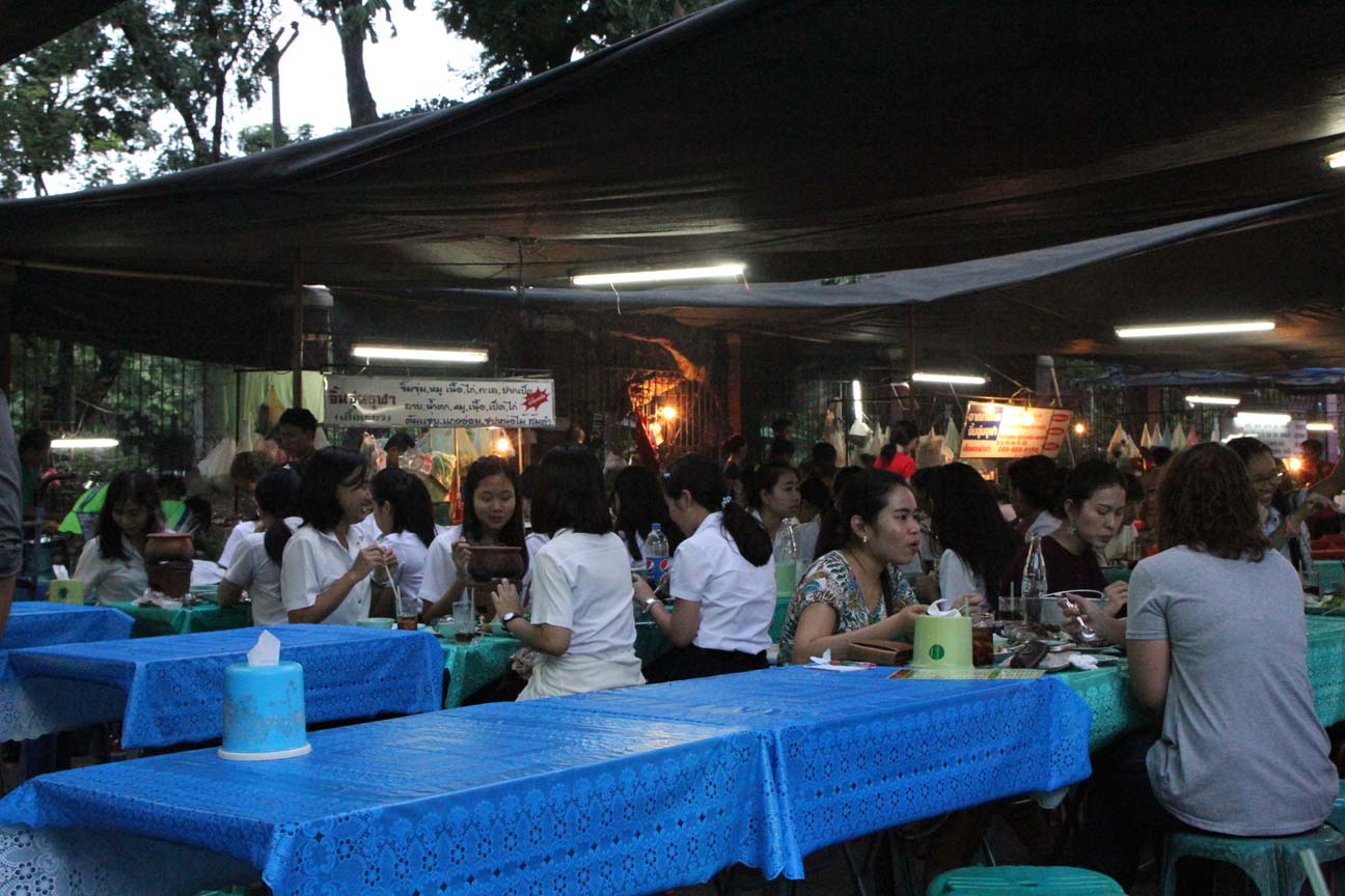 ルンピニー公園の屋台街は、日中駐車場になっているところに出るようだった。