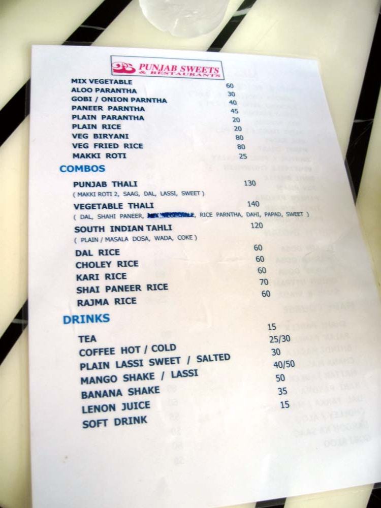 メニュー。パンジャブスイーツって店なのね。知らなかった・・・
