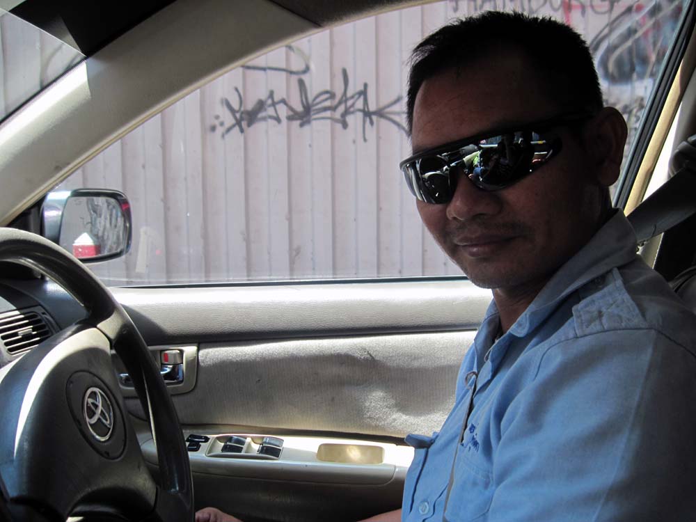 先日アヌサワリーから乗った大きいタクシーの運転手さん、レックさんに電話し、