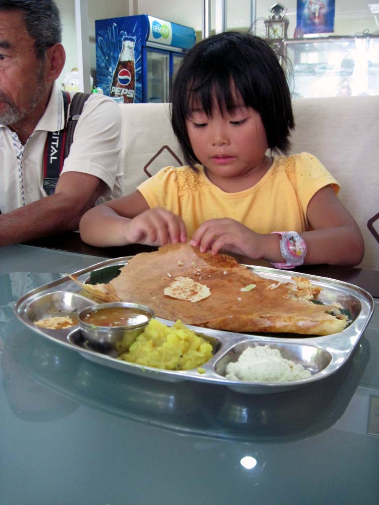 料理はターリー1人前とオニオンマサラドーサ2人前頼んだら