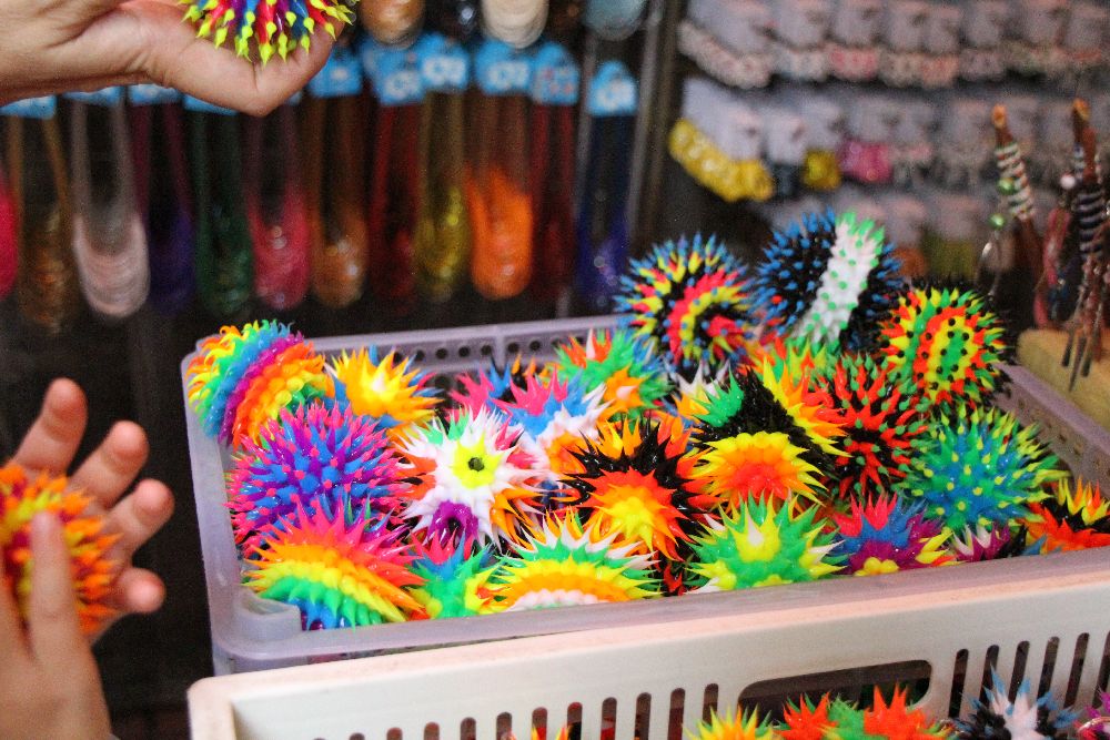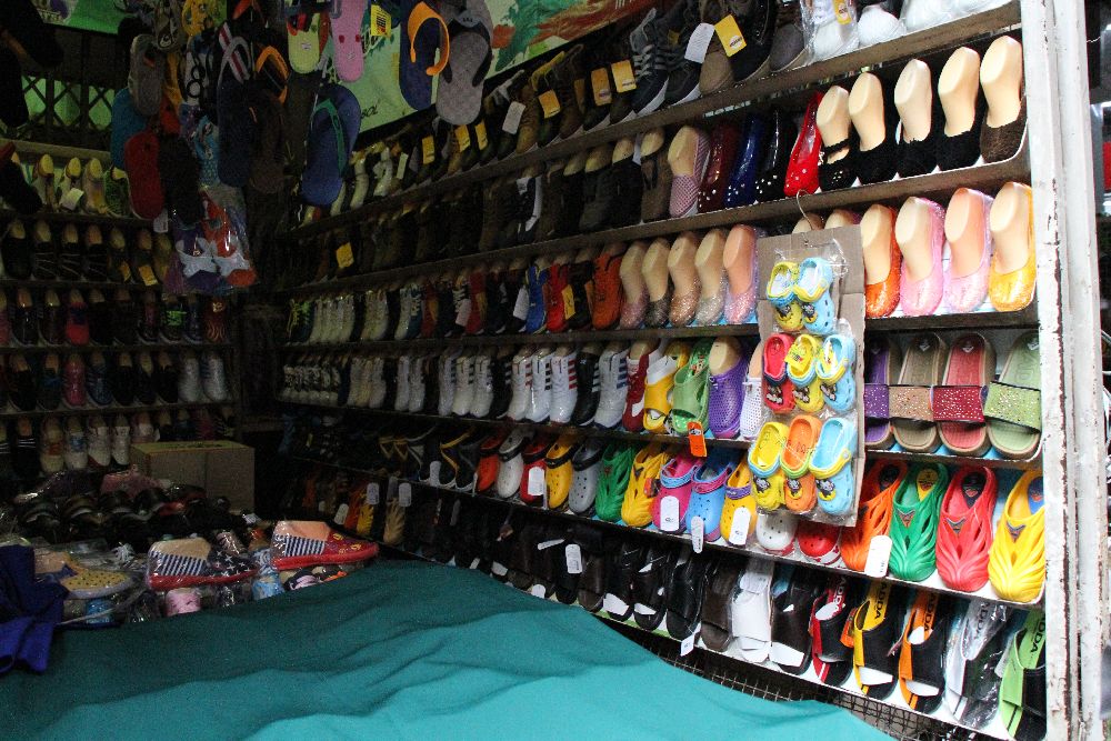 干しエビ通りの近くの靴の問屋街で子どもむけクロックスないかきいてまわった。