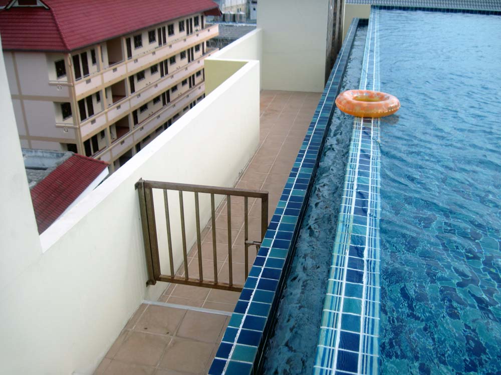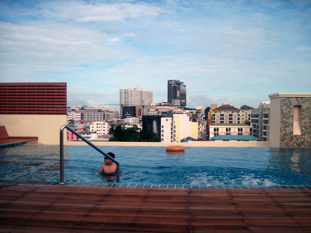 ホテルの紹介写真なんかだと、プールのフチがいきなりホテルの外壁