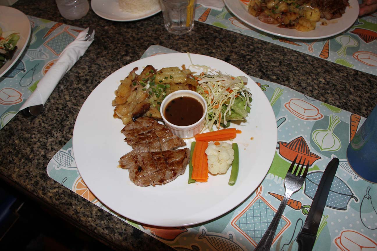 夕方ソンテウに乗り、セイラーにステーキを食べにいった。