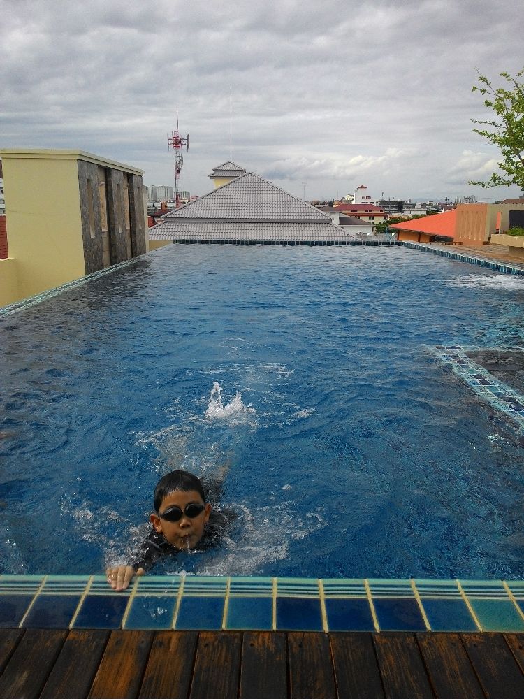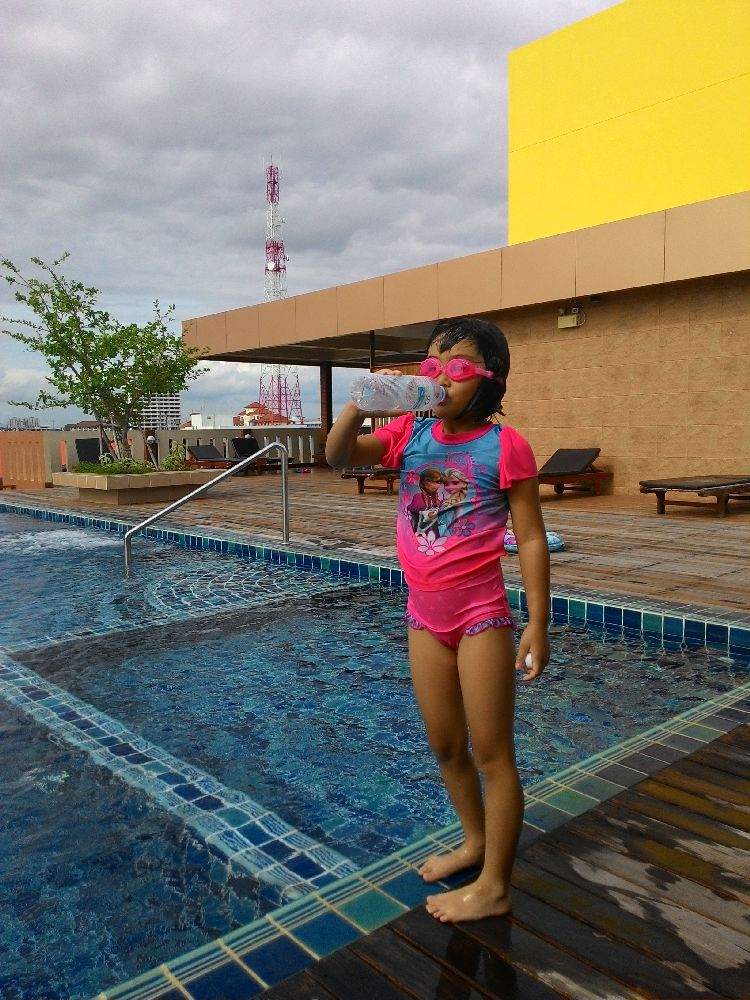 部屋でごはんを食べたあとプールへ。プールはなんかすっごくしょっぱかった。