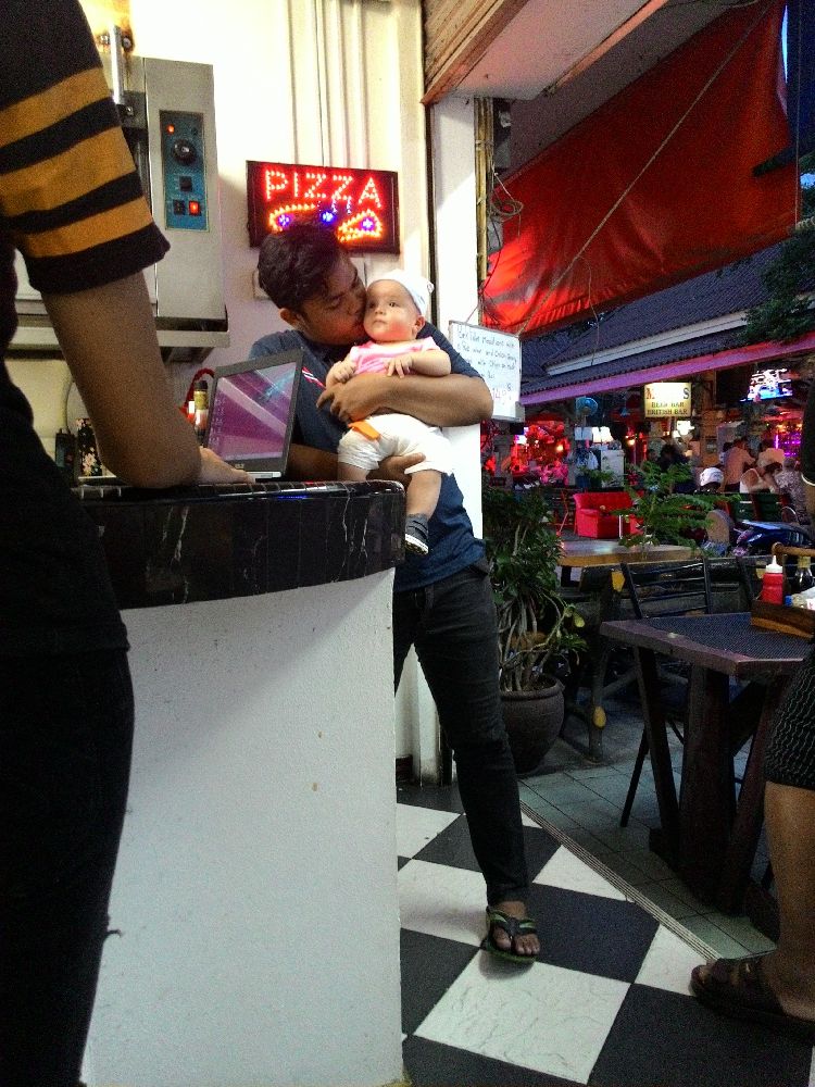 お店に1歳ぐらいのかわいい男の子がいて、その子はタイ語もまだほとんど話せないんだけど、