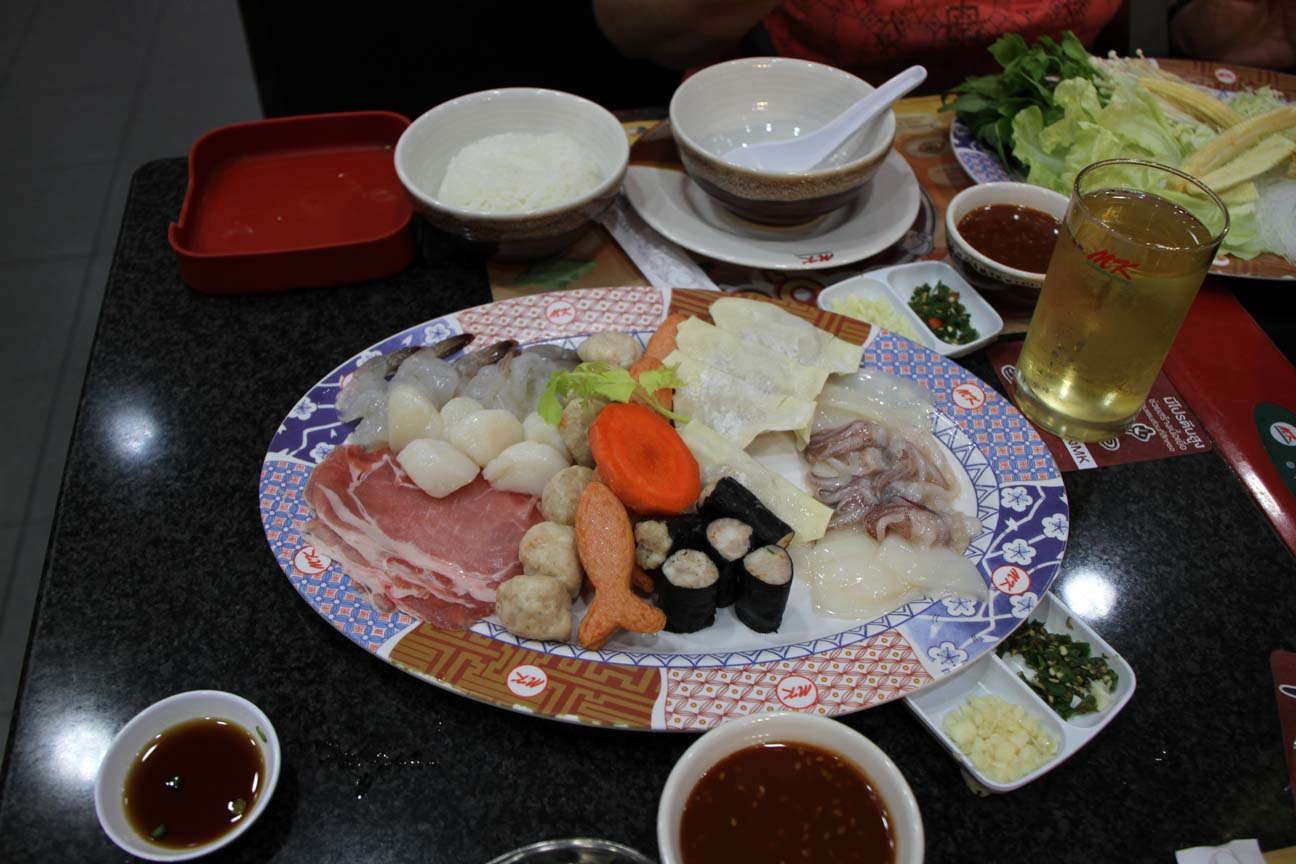 メニューではチムチュム129バーツ、ムーガタ159バーツと書いてある。