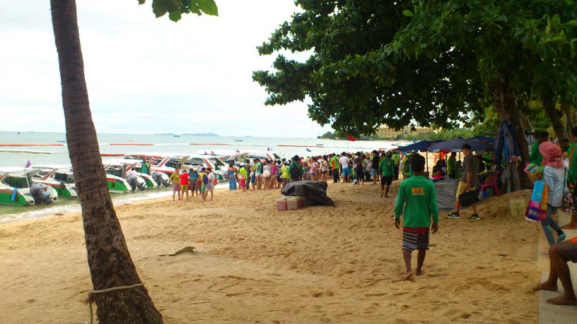 ビーチにはずらずらとすごい数のスピードボートが停まっており