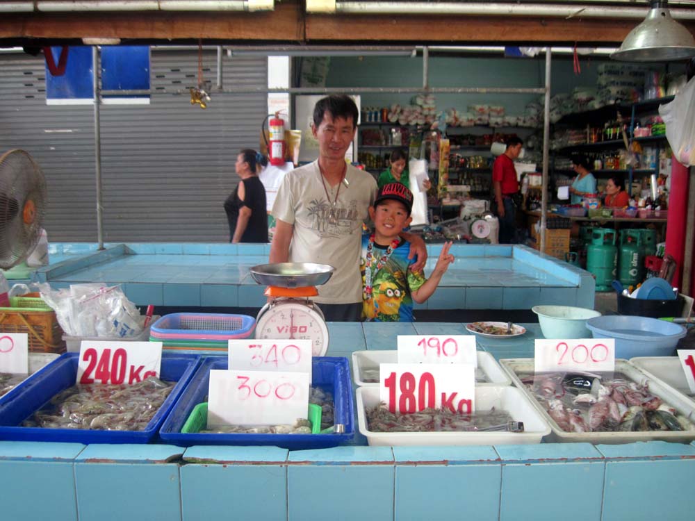続いてエビやさんで、1キロ180バーツのエビを1キロ購入。