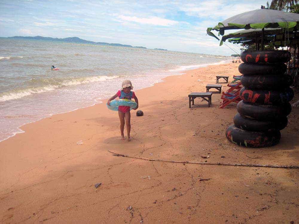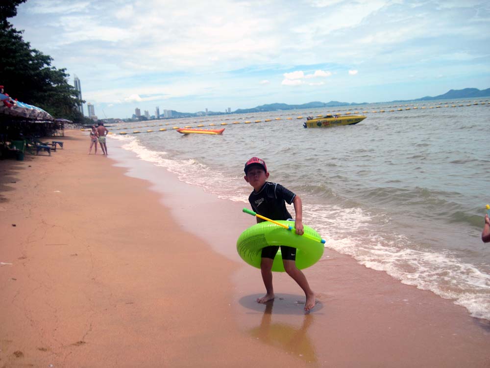 砂遊びもした。今日もたいへん遠浅でかなり歩いても足がついた。