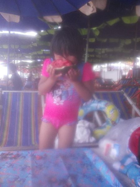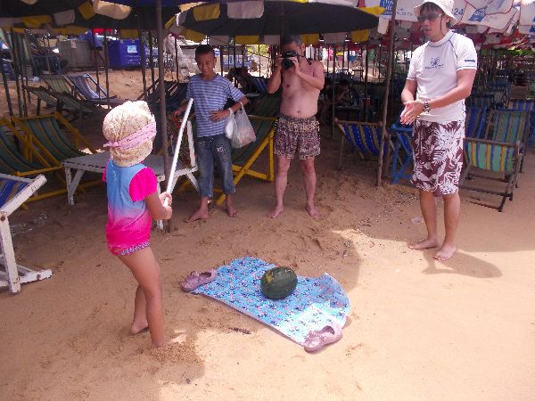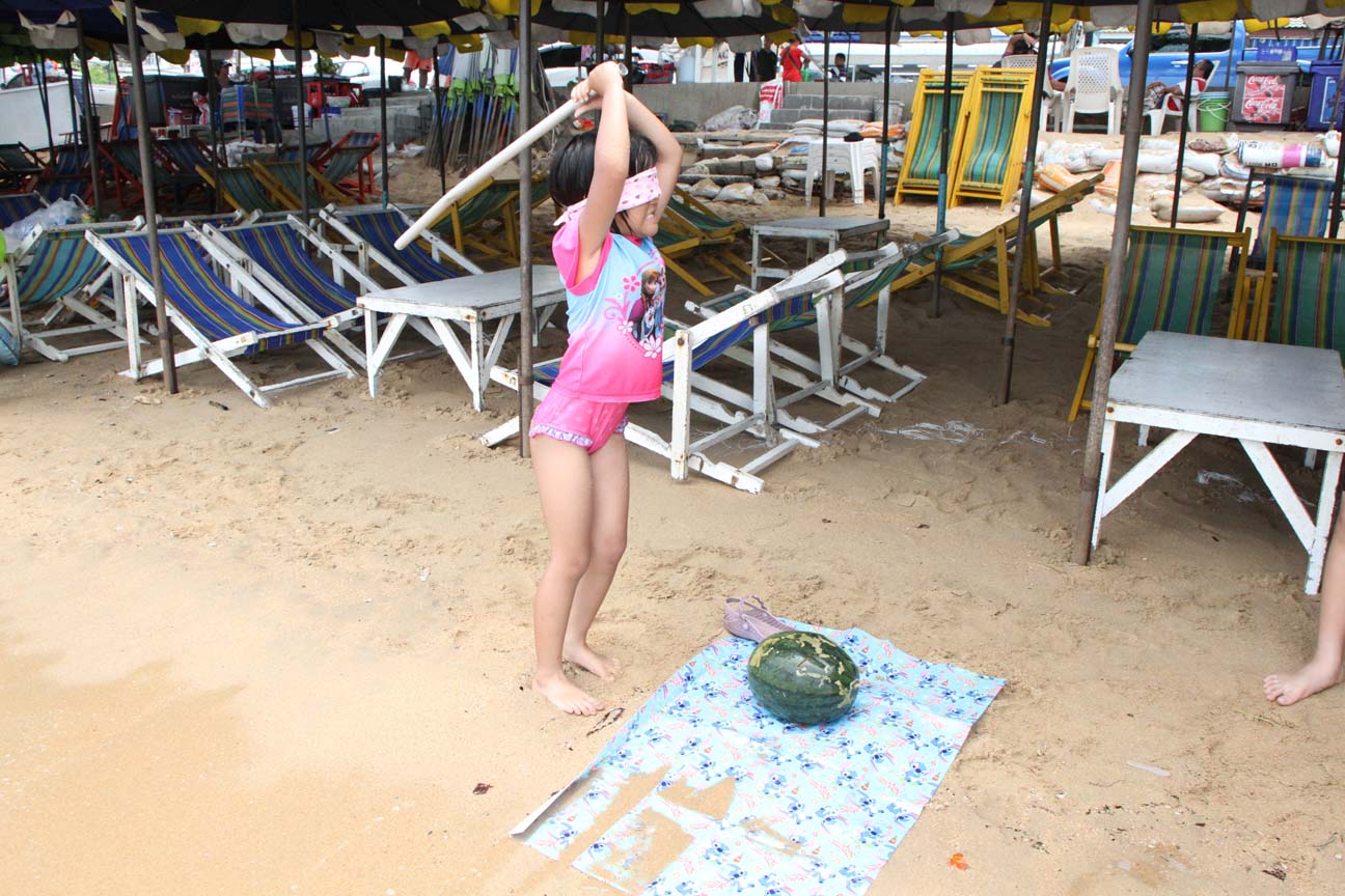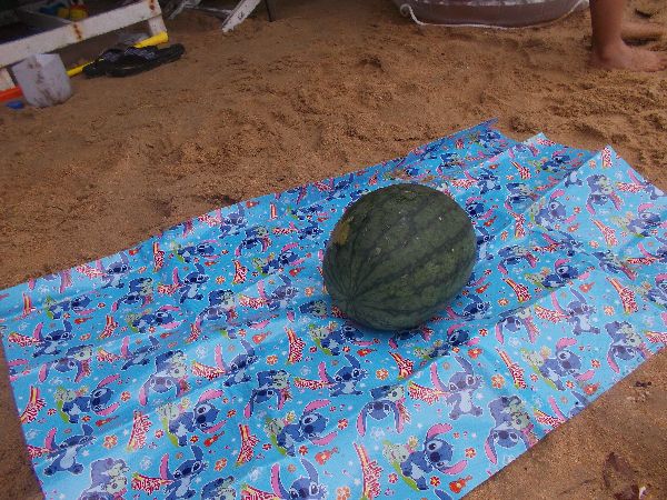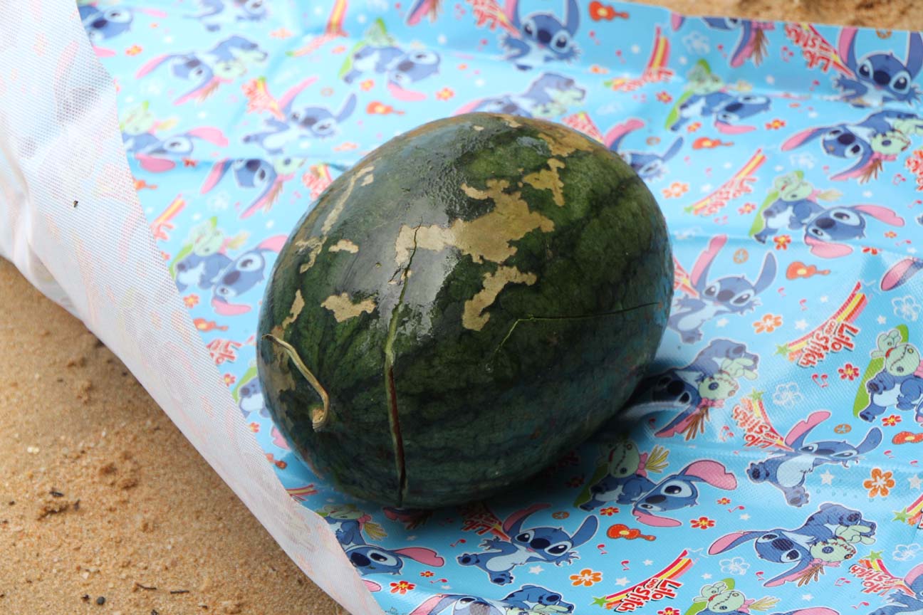 ビーチにすいか持っていき、