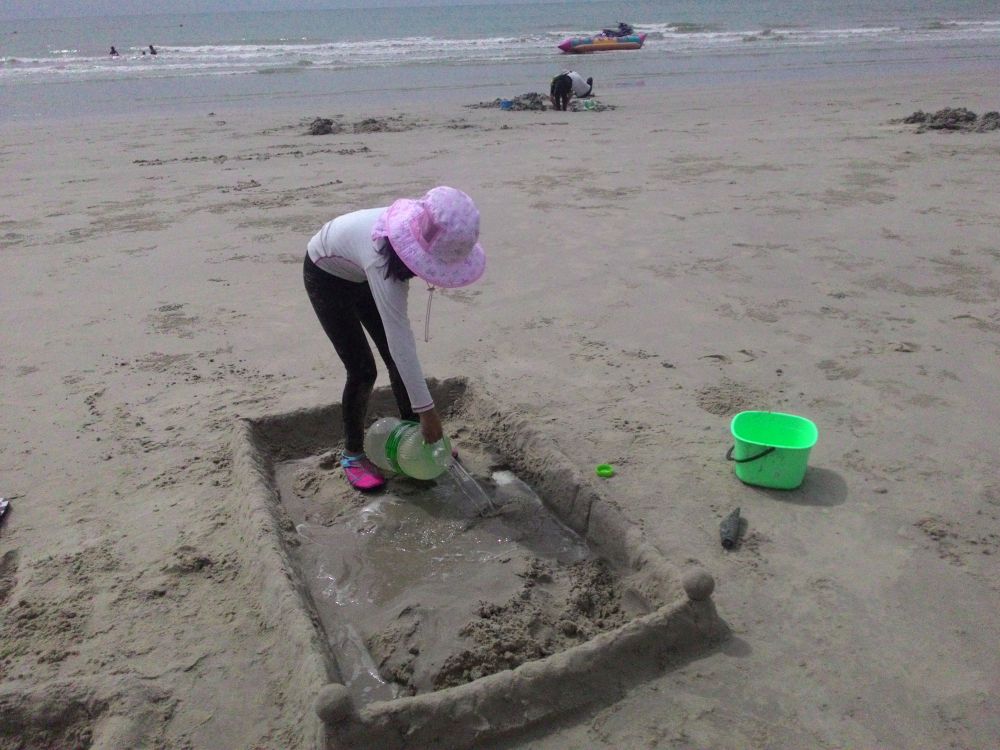 昼が近くなり一度パパさんと子供たちと泳いだ。