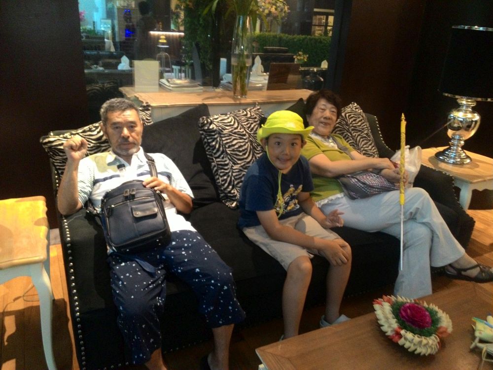たろさんたちは、奥のスペースにならんでタイマッサージしてもらって