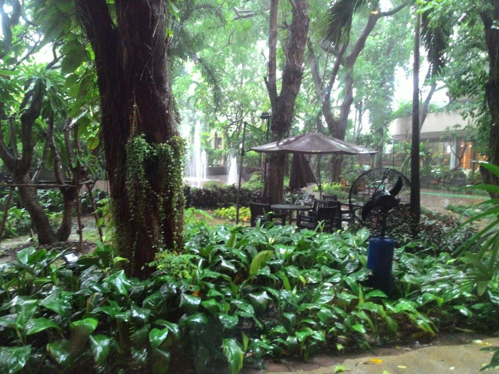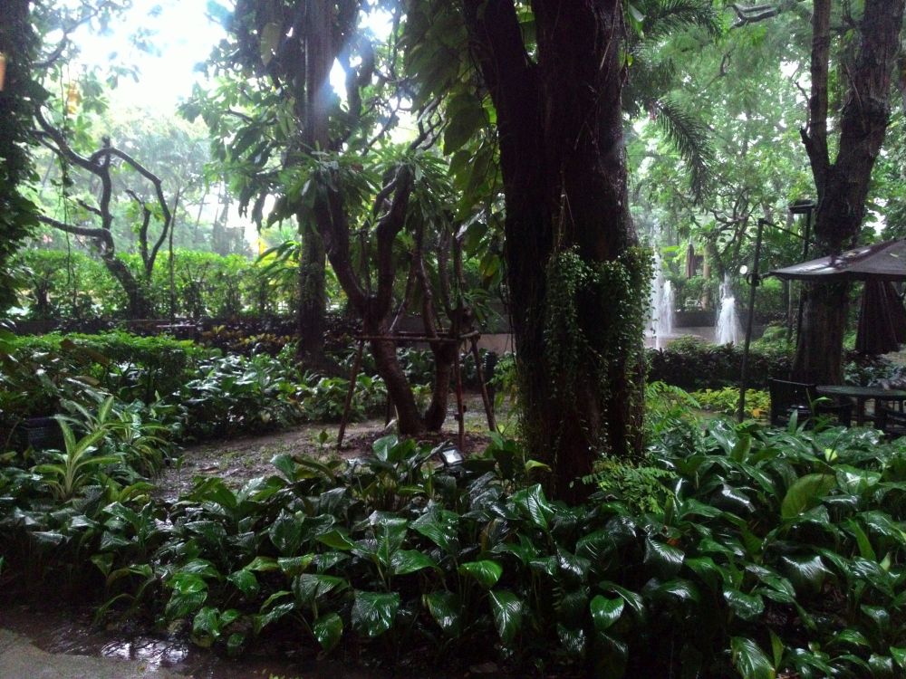 雨だと密林感が増すホテルの庭。