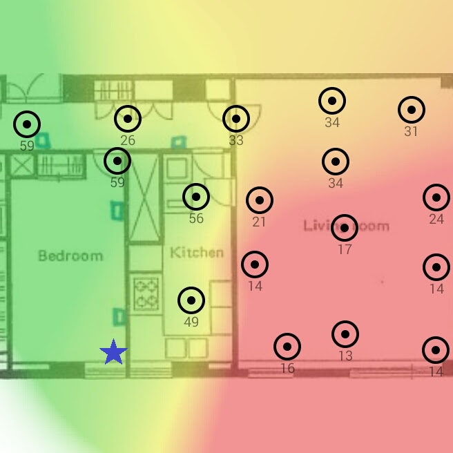 これで、居間の中をうろつきながら測定したら