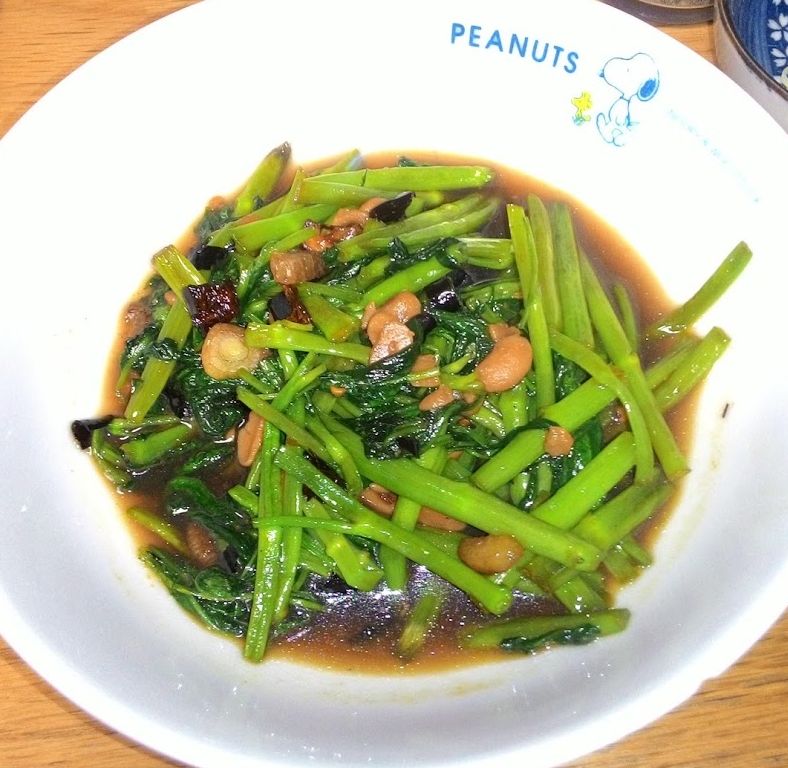 なんかジャンクな風味がして、本物のタイの空心菜炒めができた