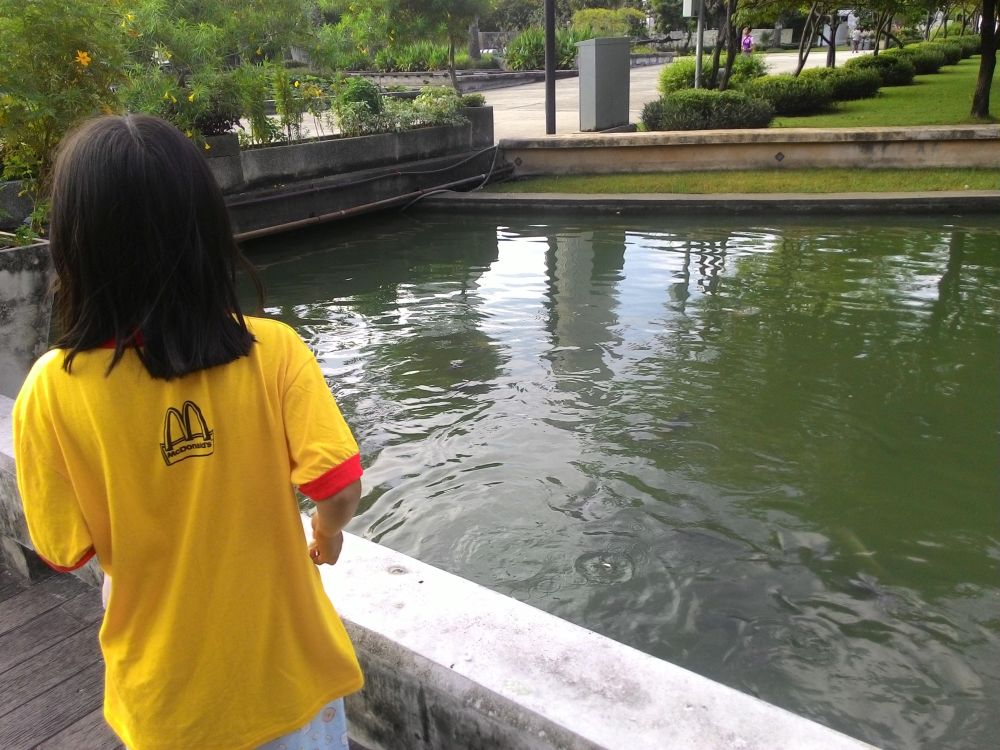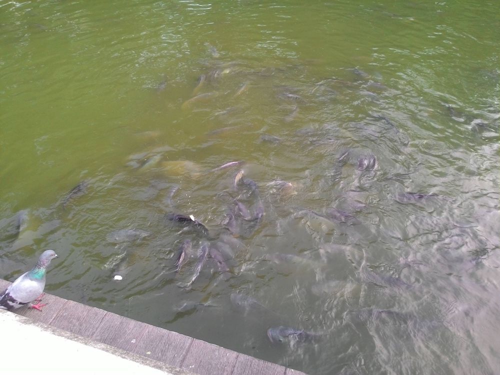 ハト。そんなところにたっていると池のナマズに襲われるぞ。